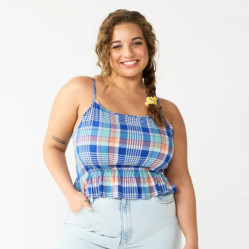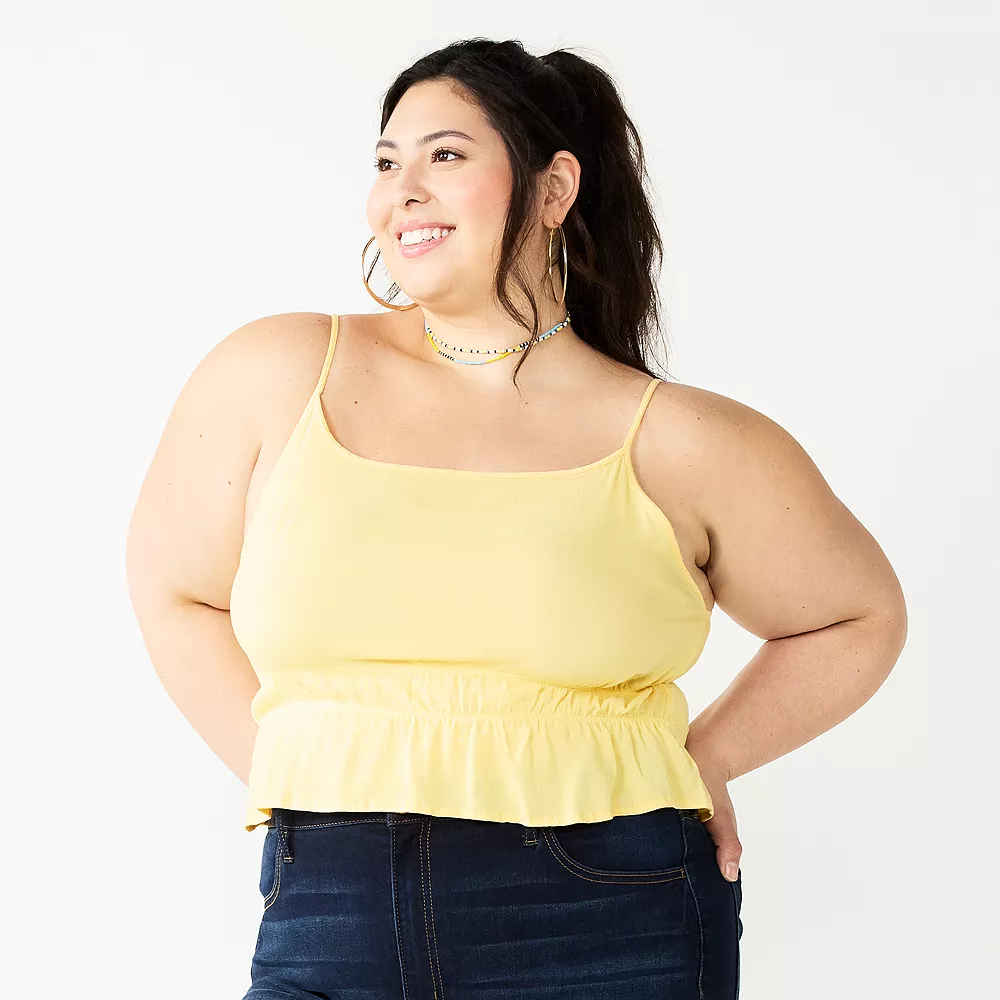 With a flattering, cinched waistband and a cute cropped silhouette, this juniors’ tank top from SO will be your next go-to.