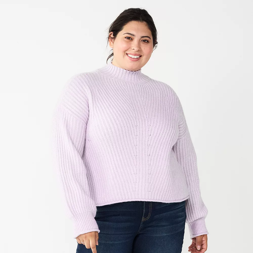Keep your vibes warm and cozy this winter with this cute juniors’ mockneck sweater from SO.