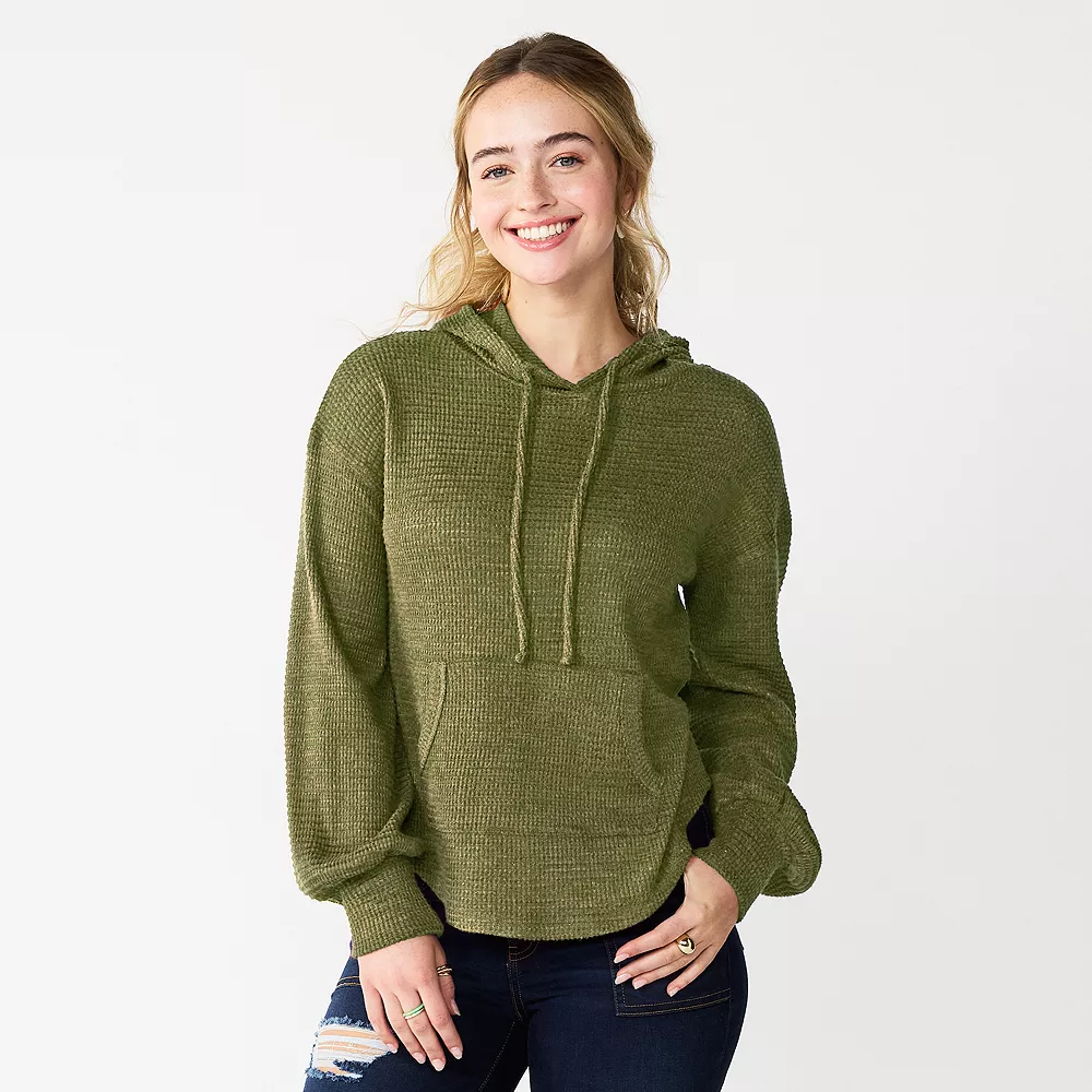Warmth and comfort combine to make this stylish balloon sleeve juniors’ hoodie from SO.