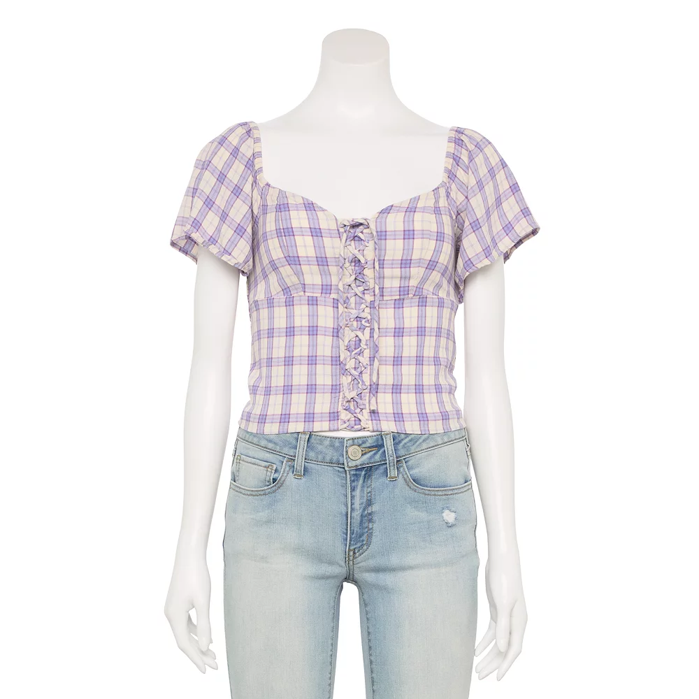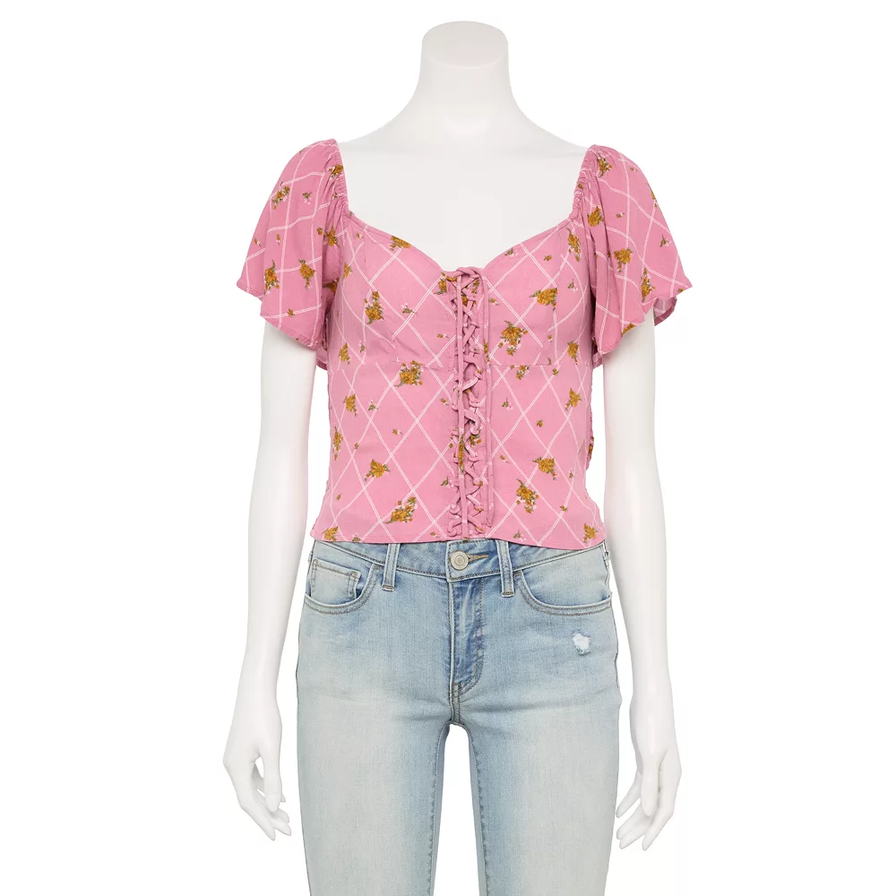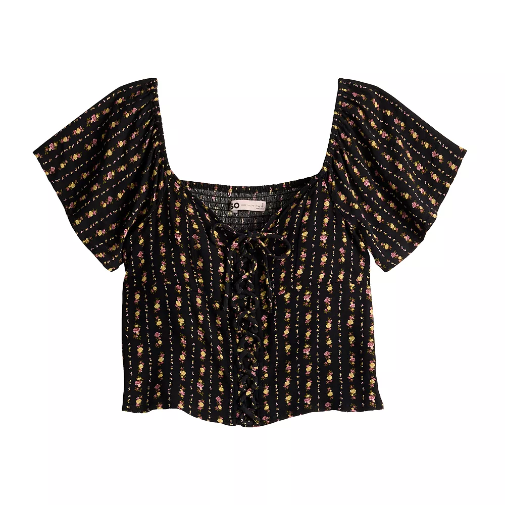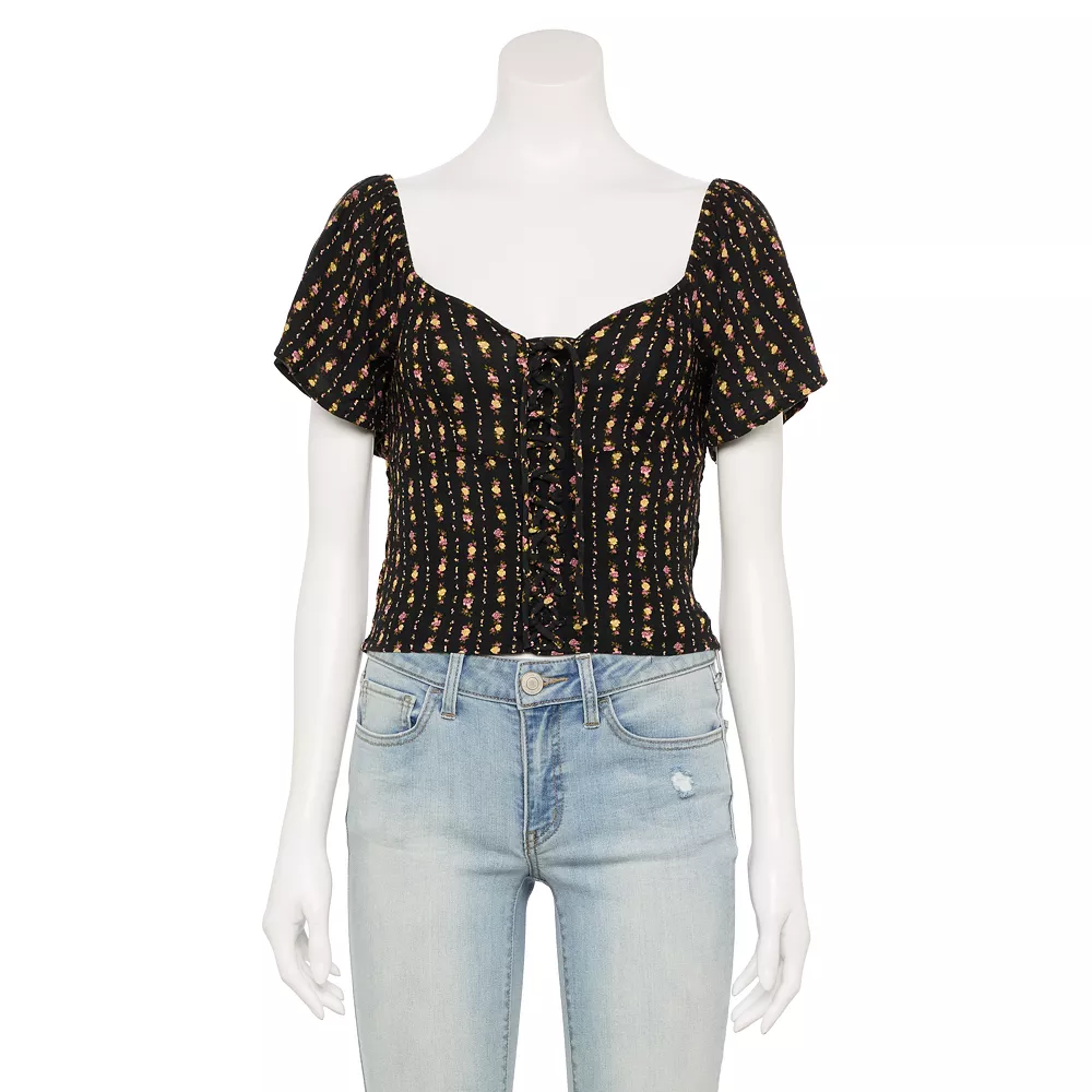 This juniors’ cropped lace-up top from SO is the perfect addition to any wardrobe!