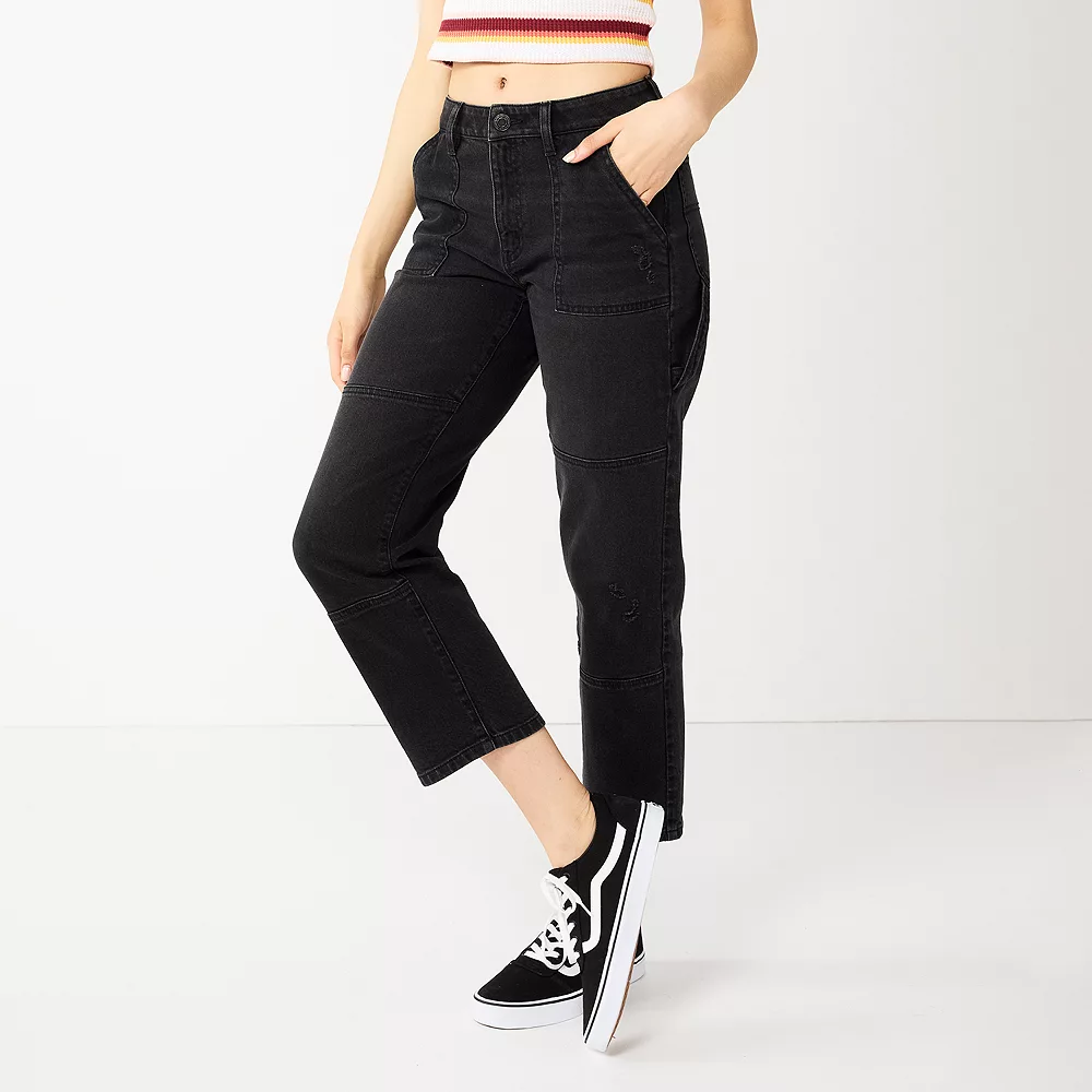 You’ll love the cropped length and carpenter styling of these juniors’ SO high-rise jeans.