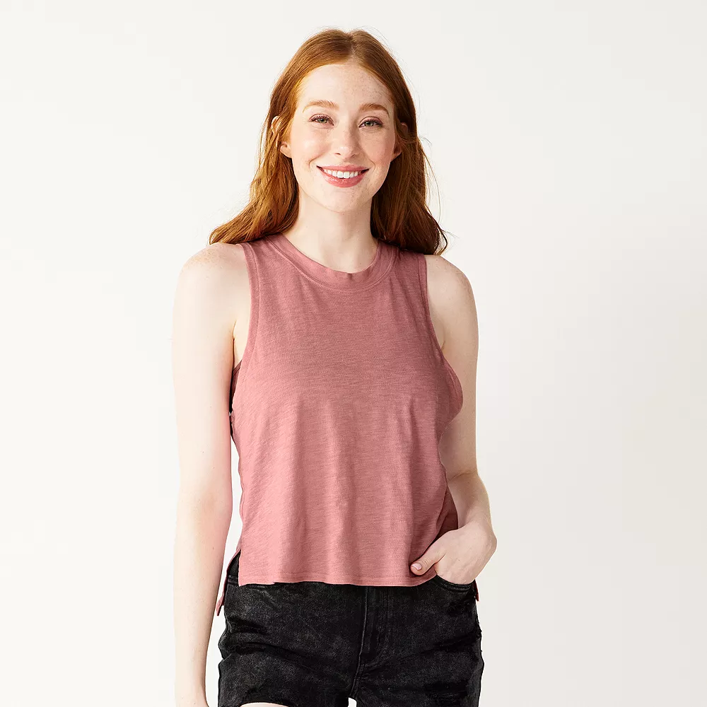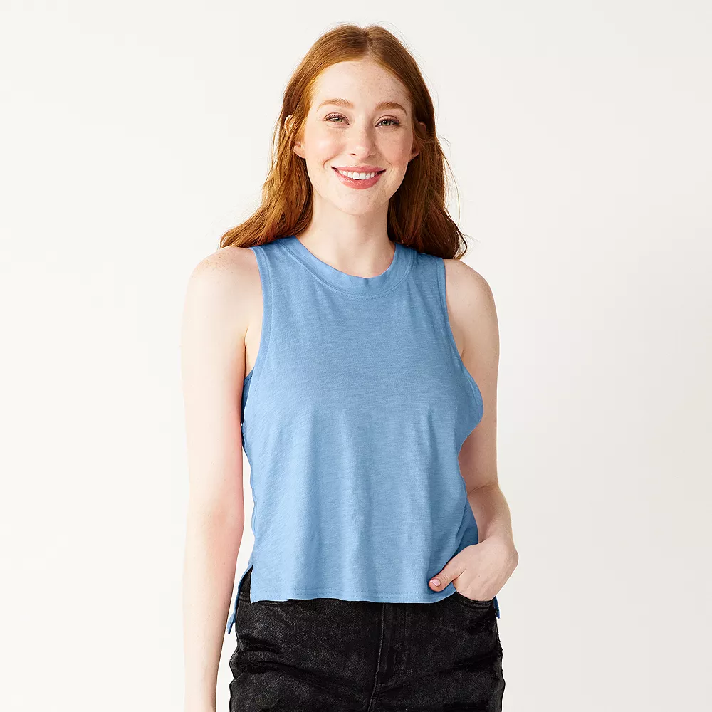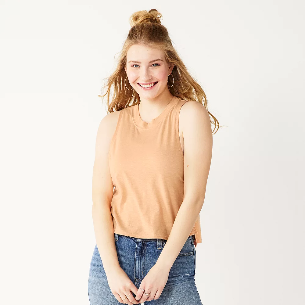 Back to basics. This juniors’ cropped high neck tank top by SO is a wardrobe essential.
