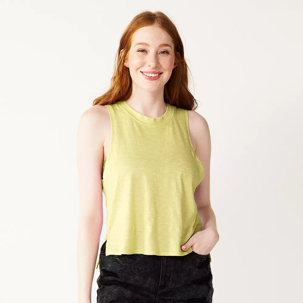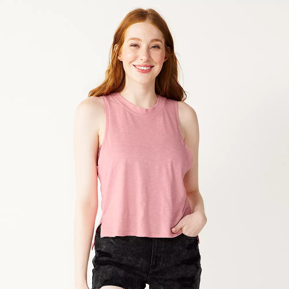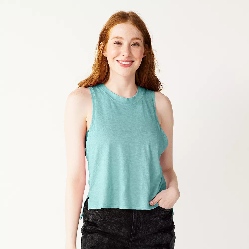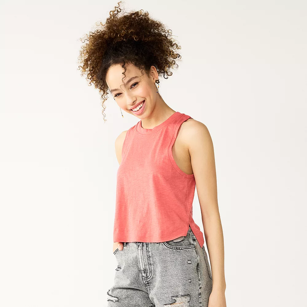 Back to basics. This juniors’ cropped high neck tank top by SO is a wardrobe essential.