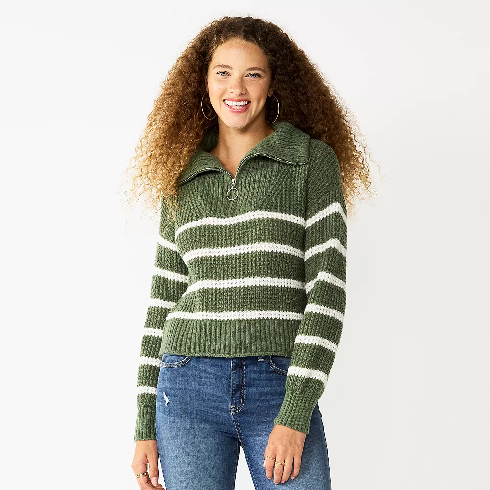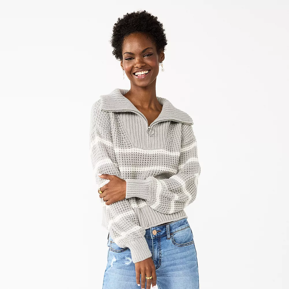 Stay comfy and cozy (but still stylish) this season with this juniors’ quarter zip sweater from SO!